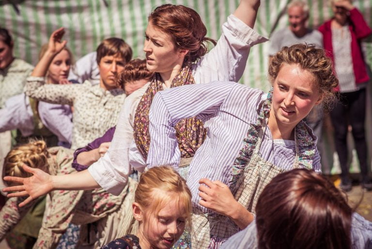 Another very important part of the project is the community participation. On tour, local community dancers are recruited to become part of the performance. They create a giant human loom, as well as emotive tableaux and joyous song. It’s so important that this special creation is performed by the community, for the community and about the community, and many special friendships have been made in the process.