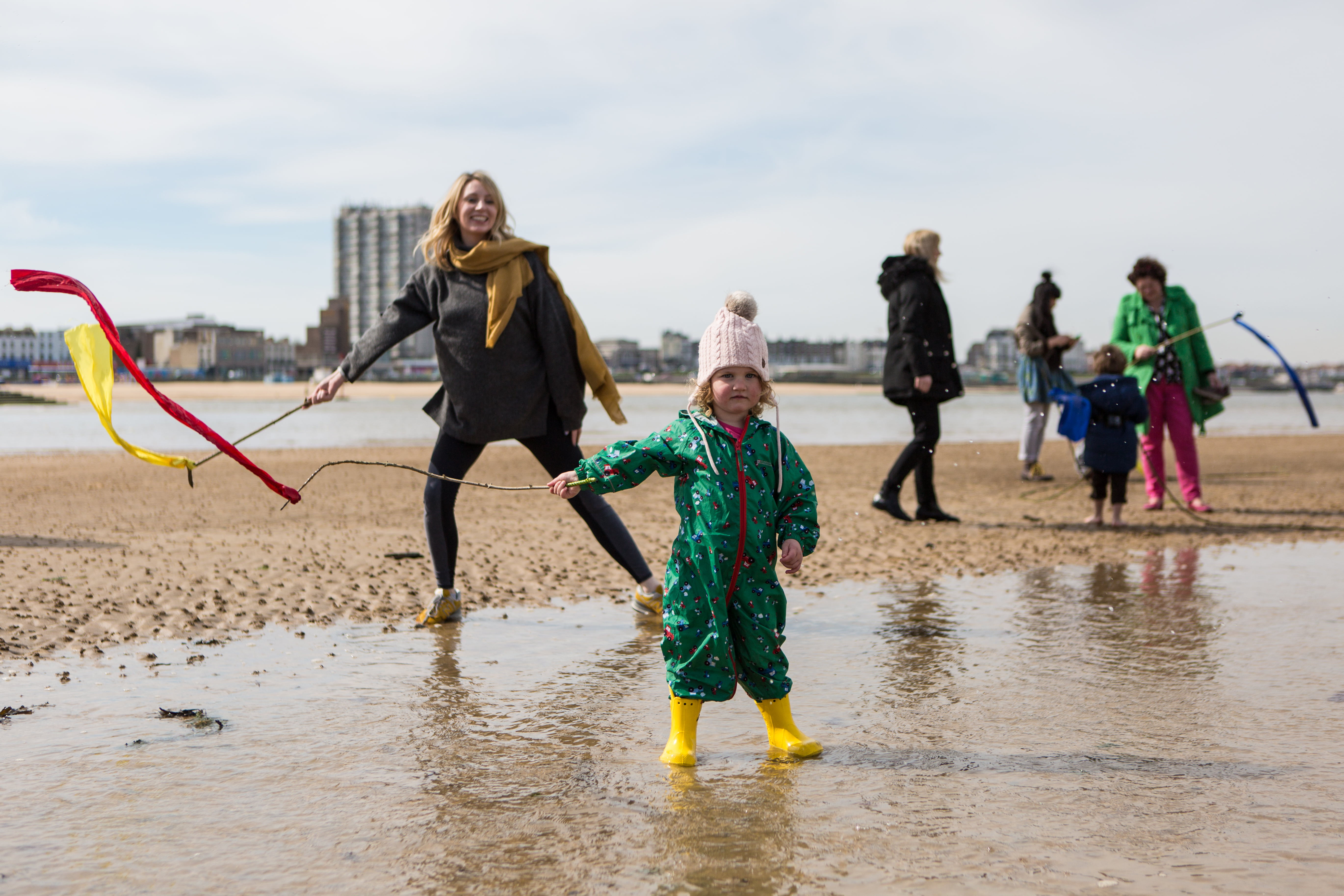 The process began in March 2019 with Bethan and Stacie delivering a series of 6 workshops at the Turner Contemporary and on Margate beach with local families, in partnership with Thanet Early Years. The workshops utilised a mix of movement and digital media activities, responding to various themes associated with the seaside to find out which resonated with the young participants and their families the most. Bethan and Stacie explored wave patterns, textures of the beach, beach portraits, mapping and lots of fun contact work between the children and their adults. They were lucky enough to work with a regular group of families over the 6 weeks and it was a delight to see how all of the participants grew in confidence with the activities, spaces and when moving with each other.